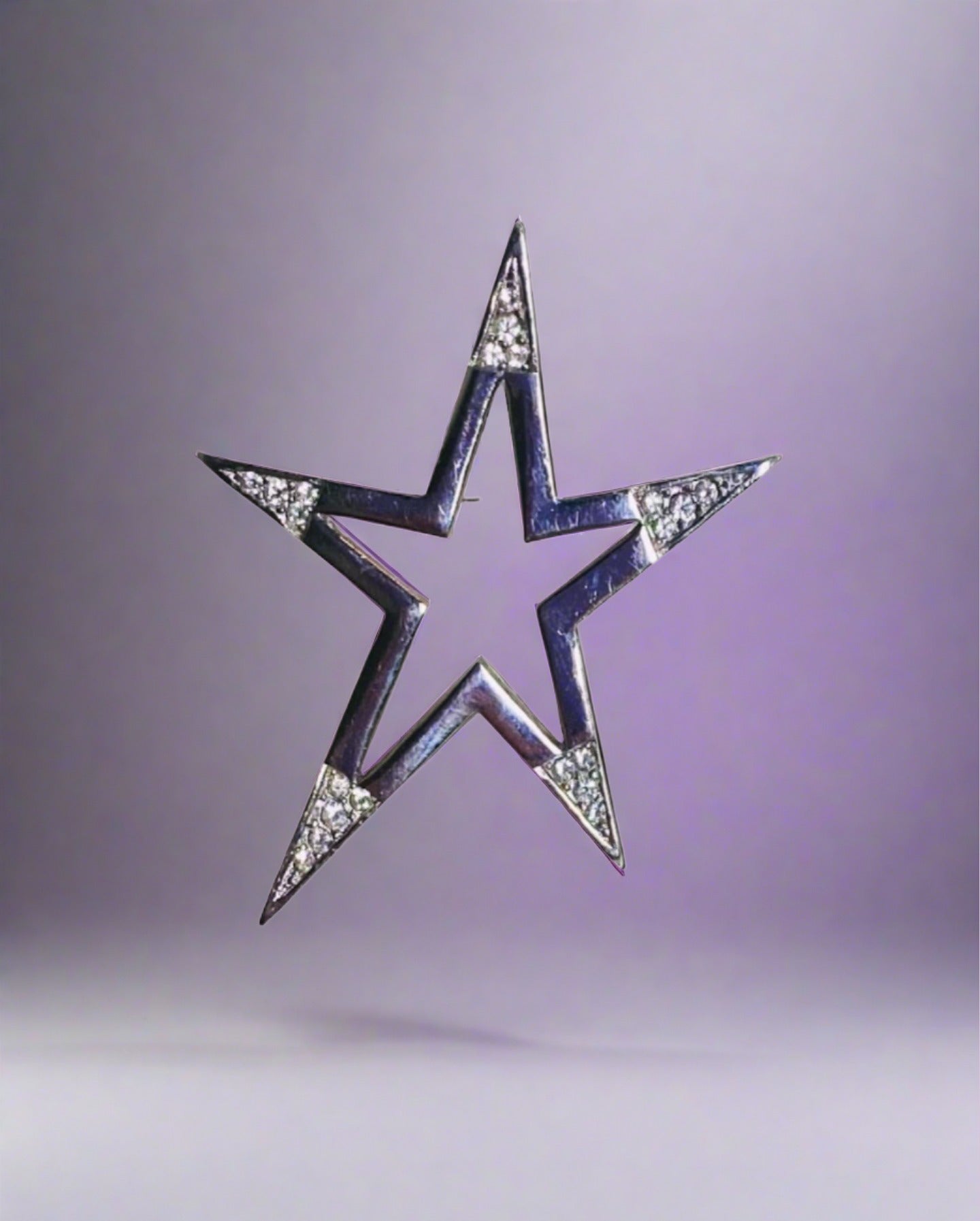 Classic Vintage Givenchy Paris New York Silver and Rhinestone Brooch. See photo of the back of the brooch where it says "Givenchy Paris New York". In researching this brooch it appeared in the late 70's and early 80's in the collection. This is in excellent condition with some very minor scratches.
