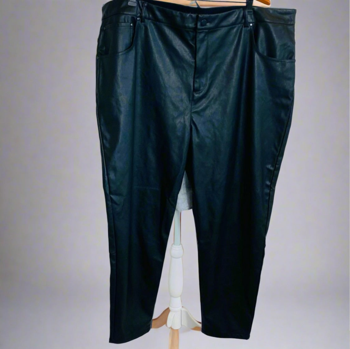 Melbourne-based brand "Ever New" Penelope Curve High Waisted Faux Leather Pants in size 22. These are brand new with tags! High rise belt loops side pockets back pockets regular, tapered fit A standard cut around the thigh with a narrow shape through the leg. These are lined so you don't have to worry about a sweaty bum. Measurements are approximate: Inseam is 26 inches, 25 inches across the waist (laid out on a flat surface).
