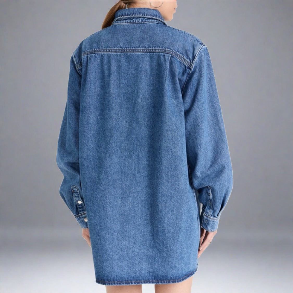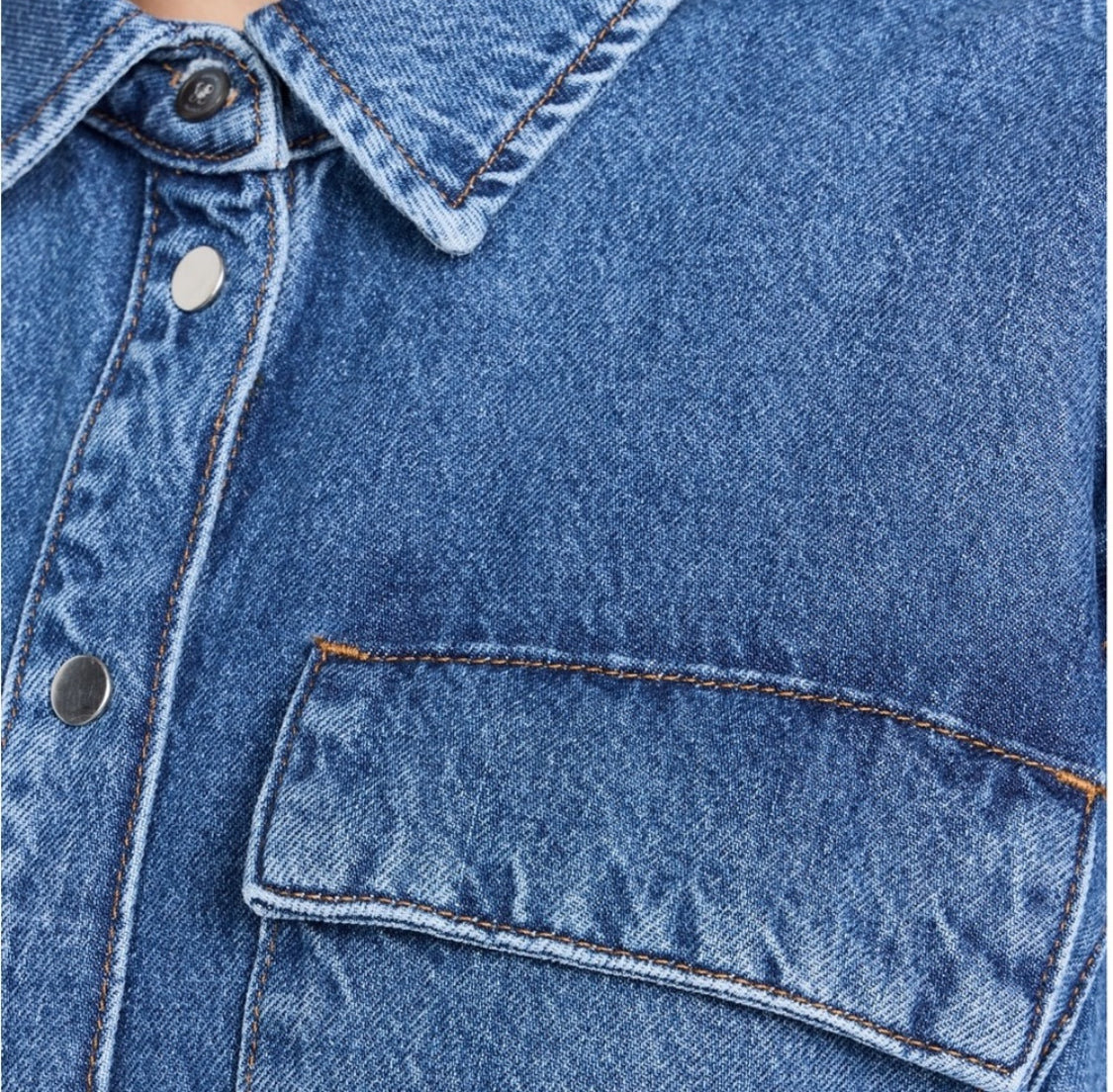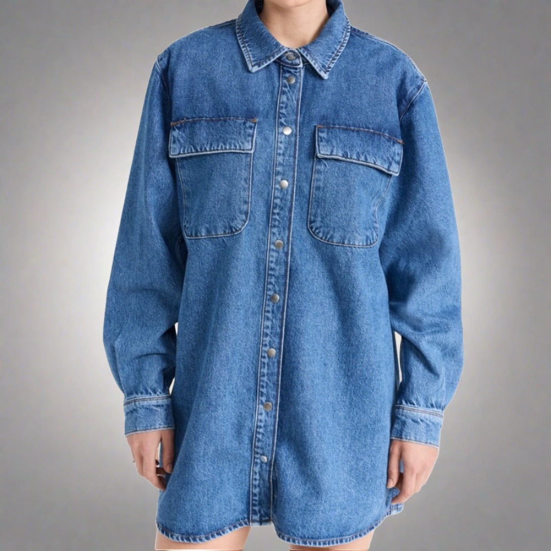 FRAME Denim A-Line Shirt Dress size small petite. Although this is a size small (and is petite) as you can see from the model, it's meant to fit oversized. Oversized is the denim look for the season! The style, feel, and look are all giving industrial. This dress is brand new and still has the tags on it.