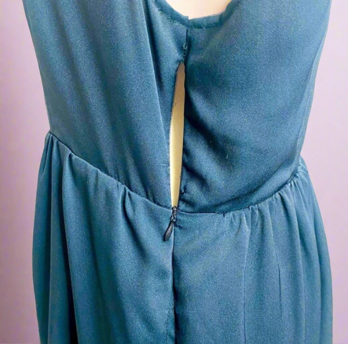Vintage Tulle small black sleeveless dress with beautiful details and design. See fabric half shank buttons in front and ruffled cap sleeves. It's giving depression era debutant! In excellent preowned condition!