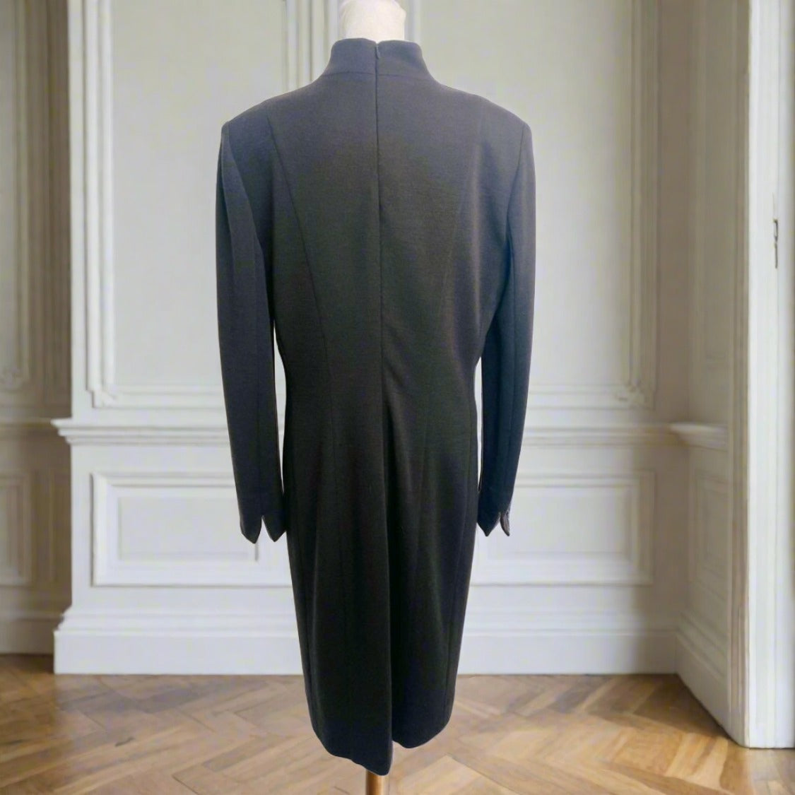 Carlisle Wool Long Sleeve Midi Vintage Dress in Dark Brown